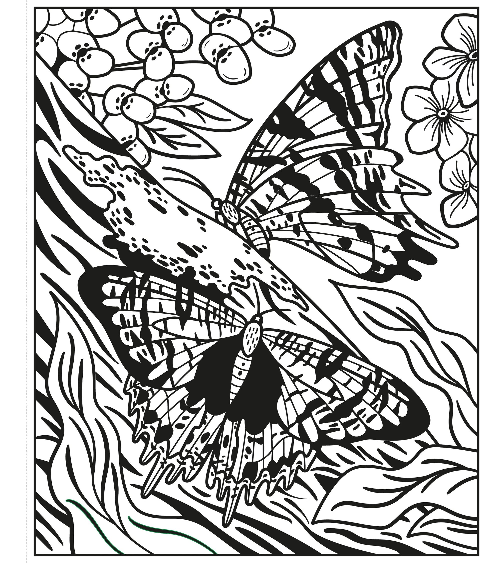 Packed with beautiful scenes showing butterflies of the world flitting among flowers. Simply brush water over the black and white designs to watch the butterflies burst into a rainbow of colours.