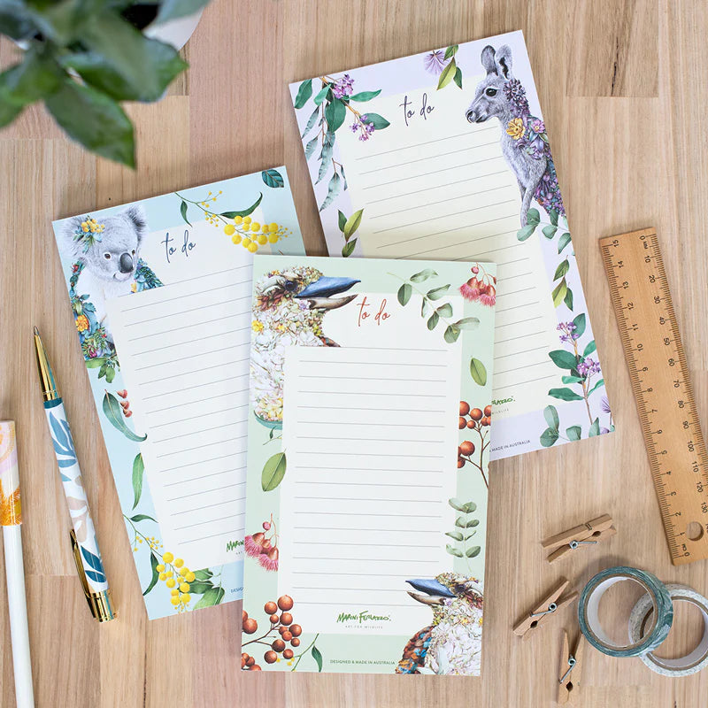 The Marini Ferlazzo lined notepads feature Australian wildlife and are designed and made in Australia. Manage your important notes and 'to-do's' with our colourfully illustrated tear-off notepads.