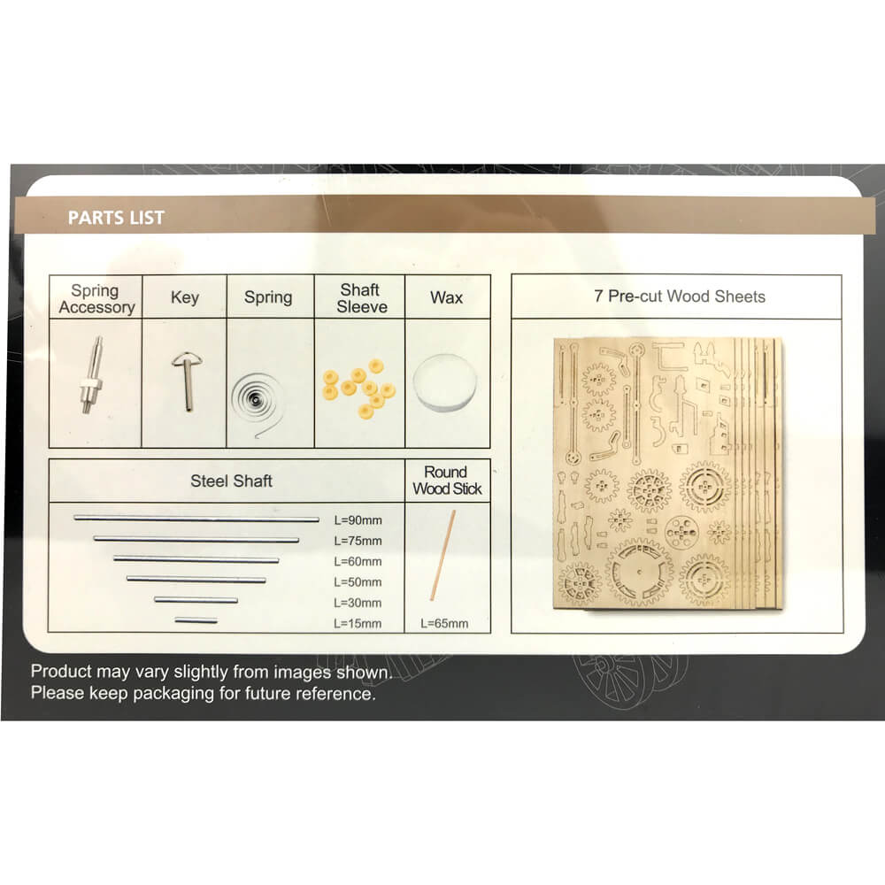 This Mechanical Gears project lets you piece together a plywood Air Vehicle Model that moves with its very own gear drive! Each pre-cut piece of the puzzle is easy to remove from the flat-packed sheets of plywood. The pieces are all numbered for your convenience, and go together smoothly as you consult the illustrated step-by-step instructions! You won't need glue to assemble your model thanks to the ingenious interlocking design, but you'll require some patience and a steady hand. Even beginner model makers can tackle this model with wind-up gear unit and spring drive!