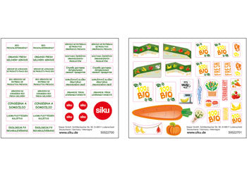Fresh eggs and milk, crispy rustic bread, juicy fruits, and crisp vegetables straight from the fields - the BIO delivery service brings the food direct to your front door in the city. Not just the goods are environmentally friendly, the transport is too, because delivery by electric Street Scooter is completely emission-free. The driver's cab of this siku model is made of metal, and the superstructure is plastic. A flap at the rear can be opened for loading and unloading. With the sheet of stickers provided, the transporter can additionally be decorated with the lettering "Fresh organic deliveries" in various languages, and also with colourful images of fruit and vegetables. And because a delivery service requires suitable produce, there are also four cardboard sheets from which preprinted foodstuffs such as fruit, vegetables, eggs, and milk can be pressed out. However, on only two of the four sheets are the components printed in full colour. Only the outlines are printed on the other two sheets, and so the children themselves become creative and can colour the foodstuffs in whatever way they wish.
