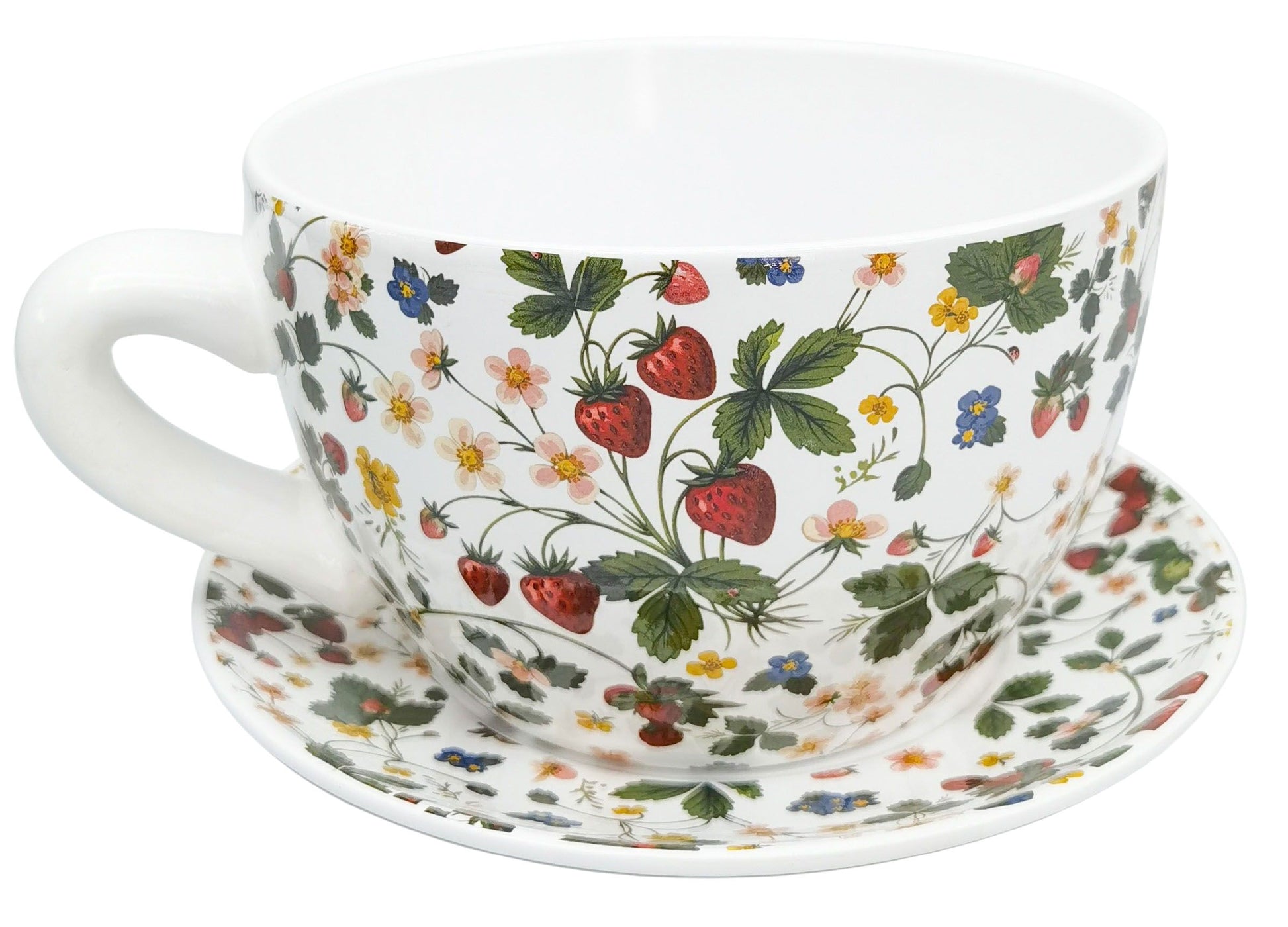 Introducing the charming Strawberry Fields Tea Cup Planter, a delightful addition to any garden or home decor. Measuring 13x24cm with a height of 13cm, this whimsical planter is designed in the shape of a classic tea cup, featuring vibrant red and green colors that evoke a sense of playfulness. Perfect for showcasing your favorite small plants or flowers, its unique design makes it an eye-catching focal point for patios, balconies, or indoor spaces, bringing a touch of botanical beauty anywhere.