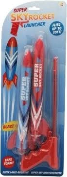 Ultra cool sky rocket gun launcher with 2 safe foam rockets!;Simply instal one of the rockets on the launcher gun and pull the trigger to launch; Rocket flies up to 15 metres15m!
